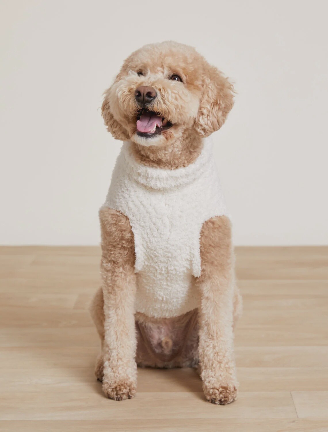 Our CozyChic pet sweater has a roll-down neck, leash hole, and ribbed finish at neck and bottom opening to ensure a comfortable fit for any breed. This adorable sweater has a honeycomb stitch body for texture and warmth. Step out in style with your furry friend by pairing with our CozyChic Honeycomb Shawl Cardi.